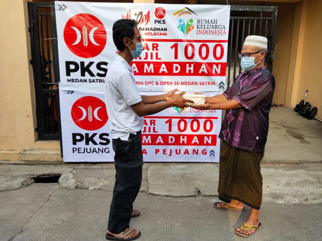 Pembagian makanan yang bertajuk “Tebar 1000 Takjil Ramadhan”, di inisiasi oleh RKI yang merupakan bagian dari BPKK DPC PKS Kecamatan Medan Satria, melaksanakan pembagian makanan di empat wilayah, bekerjasama dengan DPRa PKS Kelurahan se-Kecamatan Medan Satria.