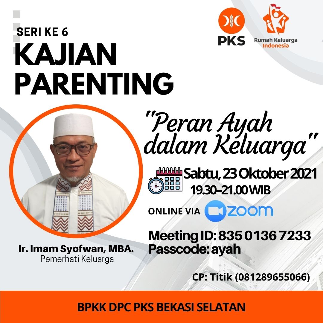 Agenda yang diselenggarakan secara online melalui zoom meeting ini diselenggarakan pada Sabtu (23/10) dengan menghadirkan pembicara Ir. Imam Sofwan, MBA., yang merupakan tokoh pemerhati keluarga.