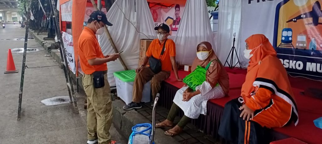 Bang Oim, yang juga sedang bertugas di posko mudik spontan menawarkan bantuan untuk mengantarkan Ibu Lilis ke stasiun Kranji.
