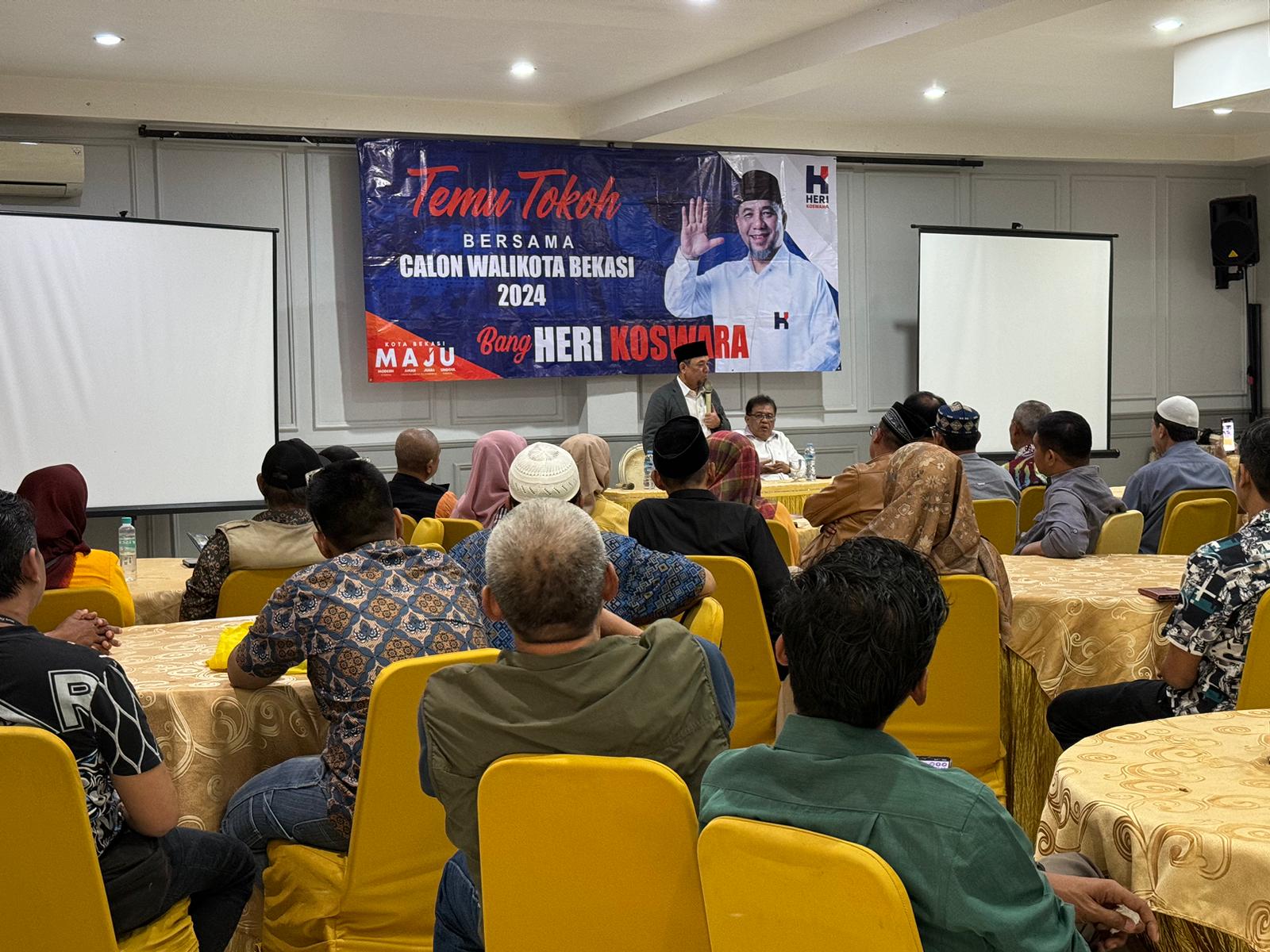 DPDPPKSKOTABEKASI – Bakal Calon Wali Kota Bekasi, Heri Koswara, menggelar silaturahmi dan dialog dengan sejumlah tokoh masyarakat di Kecamatan Rawalumbu, Senin (12/8/2024), di RM. Wulansari, Margajaya, Bekasi Selatan. Pertemuan ini dihadiri oleh Ketua RW, Ketua DKM, kader Partai Nasdem dan Hanura, serta beberapa mantan calon legislatif DPRD Kota Bekasi.