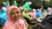 Ya, betul hujan tiba-tiba mengguyur acara. akankah para peserta bubar? Masya Allah tetap bertahan. Mental pejuang. Serasa sudah menjadi SANTIKA beneran.