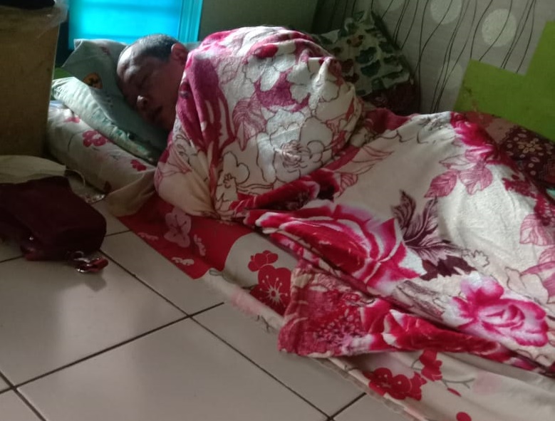 Roni Susanto yang tengah terbaring saat menjalani isoman