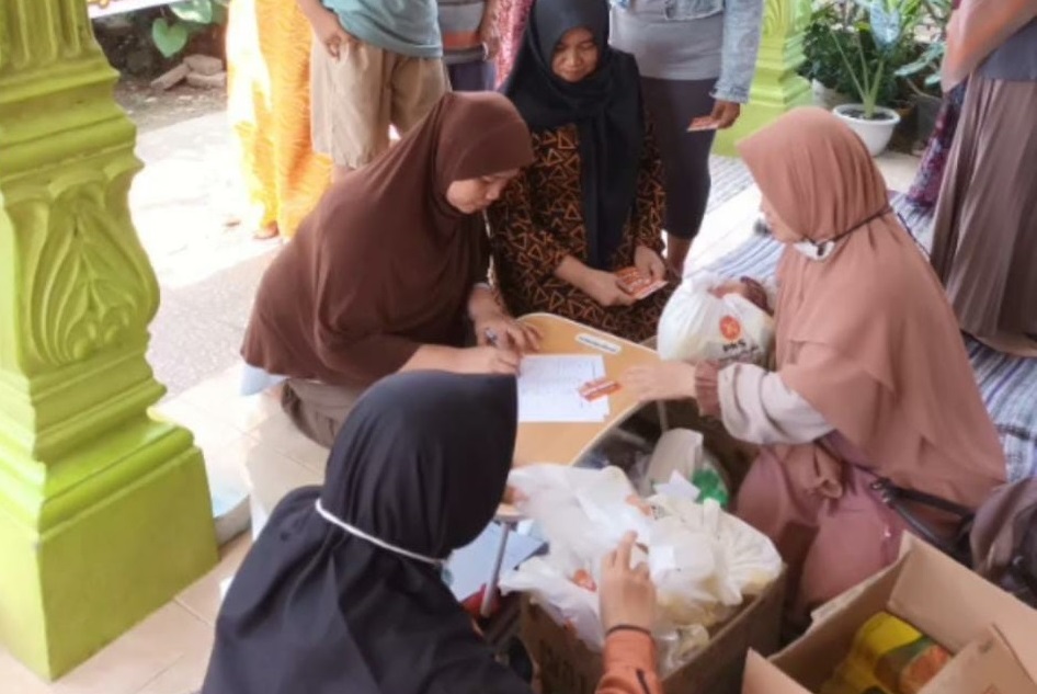 Penyaluran paket minyak goreng dan sembako untuk warga