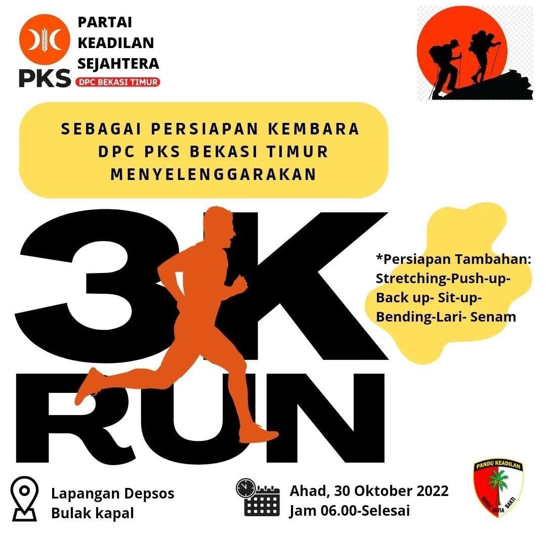 Acara 3K Run ini digagas DPC PKS Bekasi Timur dan dilaksanakan di bawah kendali Bidang Kepanduan yang dikomandani Indra Irawan.