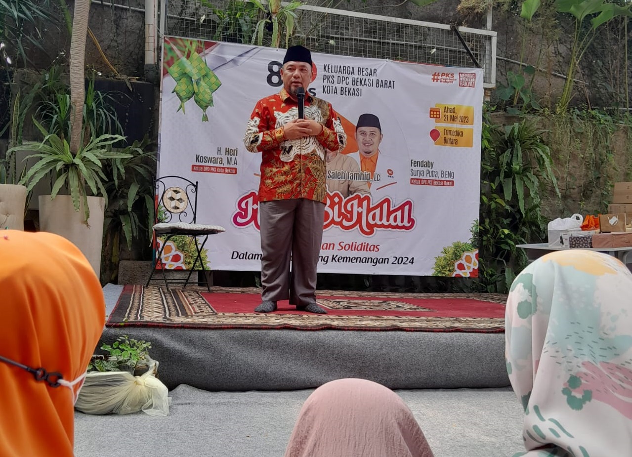DPDPKSKOTABEKASI – Ketua DPD PKS Kota Bekasi Heri Koswara hadir dalam Halal Bihalal 1444 Hijriyah DPC PKS Bekasi Barat di Green Park Klinik Trimedika Bintara, Ahad (21/5/2023) pagi.